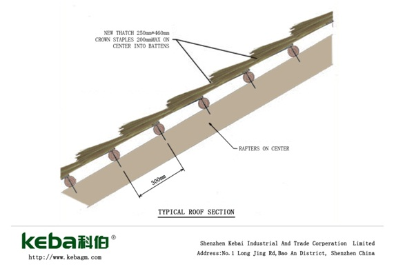 3) ? ?仿真茅草瓦雖有一定的防雨水作用(重疊較厚時),但擋雨水并不是它的主要功能,建議安裝前屋頂做好專業的防水層;
