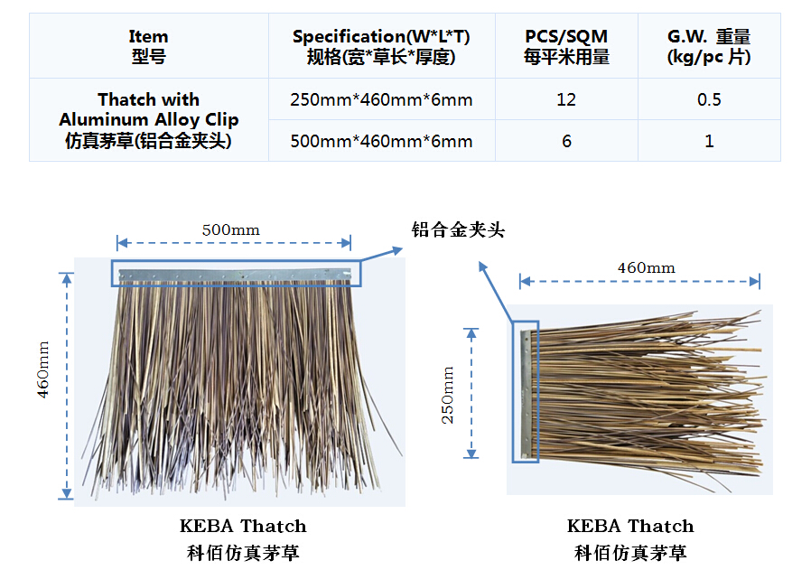 KEBA仿真茅草采用目前國際上最先進的納米合成高分子材料技術和工藝生產的。利用納米粒子的特有的物理化學性質,使得其具有更加優異的耐候性及阻燃性,能滿足ASTM-G154-06 抗UV老化測試標準及UL94-V0阻燃等級,同時通過國家防火建材阻燃測試B1級。