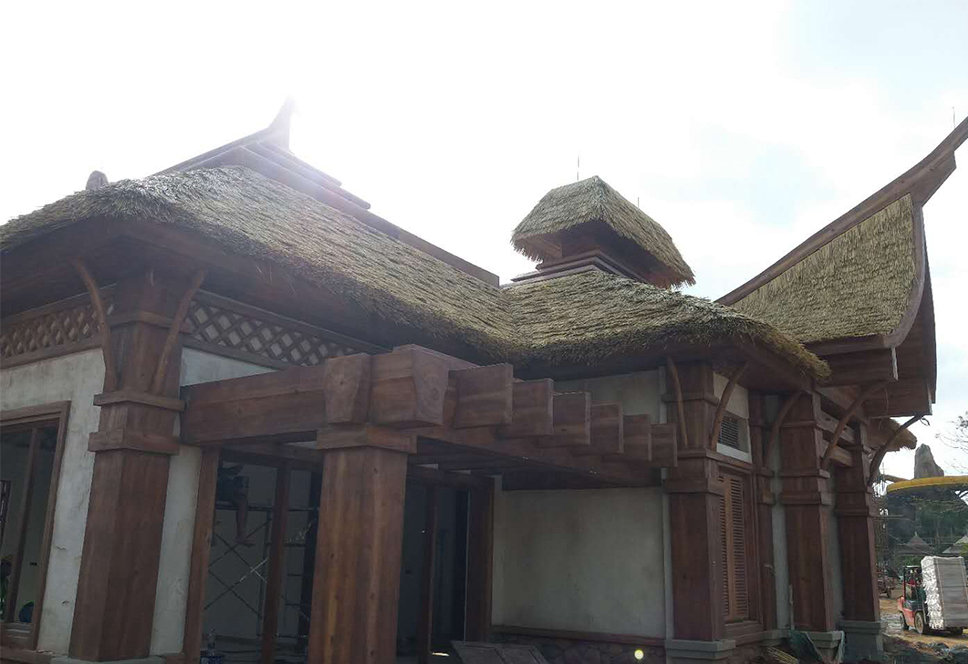 ? ? ? ?無論是古代還是現代,一直都有茅草屋的存在,只是隨著科學技術的發展,由原來的自然茅草變成現在的仿真茅草,古代的自然茅草是從山上生長的茅草稻草通過人工收割安裝在屋頂上,而現在不同了,現代的茅草是通過納米合成仿真技術,多到工序生產而成的仿真茅草,現代的仿真茅草優勢很多,防火阻燃、防腐蝕、耐低溫、壽命長等特點,古代的茅草一般只能用一年,意味著每年都要更新換代,并且古代塔建的茅草屋經常是樓雨的,更別想各種造型結構了。