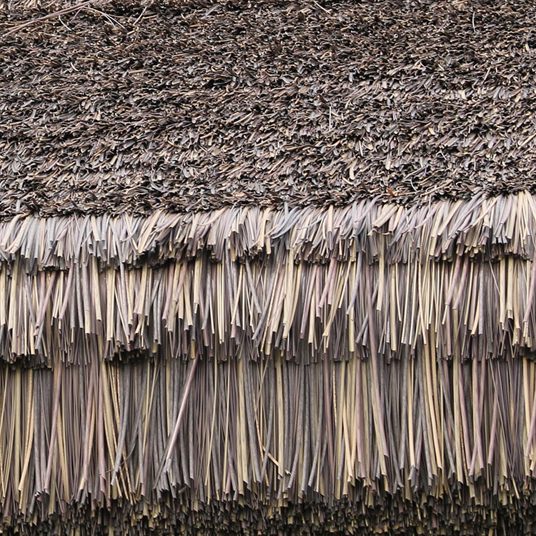 屋脊分斜脊和正脊,先將茅草鋪在斜脊兩側(cè)主面,然后同步從下向上進(jìn)行鋪茅草,直至鋪出脊梁形狀,形成雨水從上向下流的導(dǎo)向,把屋面茅草瓦片鋪完就可以做正脊收口,這里斜脊和正脊茅草要把主屋面茅草壓住,可根據(jù)實(shí)際大小調(diào)整茅草瓦片的長(zhǎng)短,可剪成小片茅草,便宜安裝,體現(xiàn)自然效果。鋪完屋脊兩邊再在屋脊正梁上鋪一排茅草,這樣整個(gè)茅草屋頂基本安裝完畢,剩下收尾部分,可根據(jù)自己的喜好效果,適當(dāng)修飾調(diào)整。