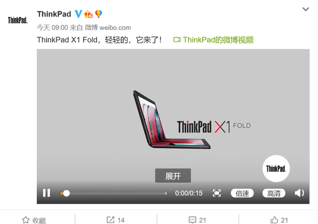 PingWest品玩8月20日訊,聯(lián)想今天發(fā)布視頻,為即將推出的 ThinkPad X1 Fold 進行預(yù)熱。這是全球首款折疊屏電腦。