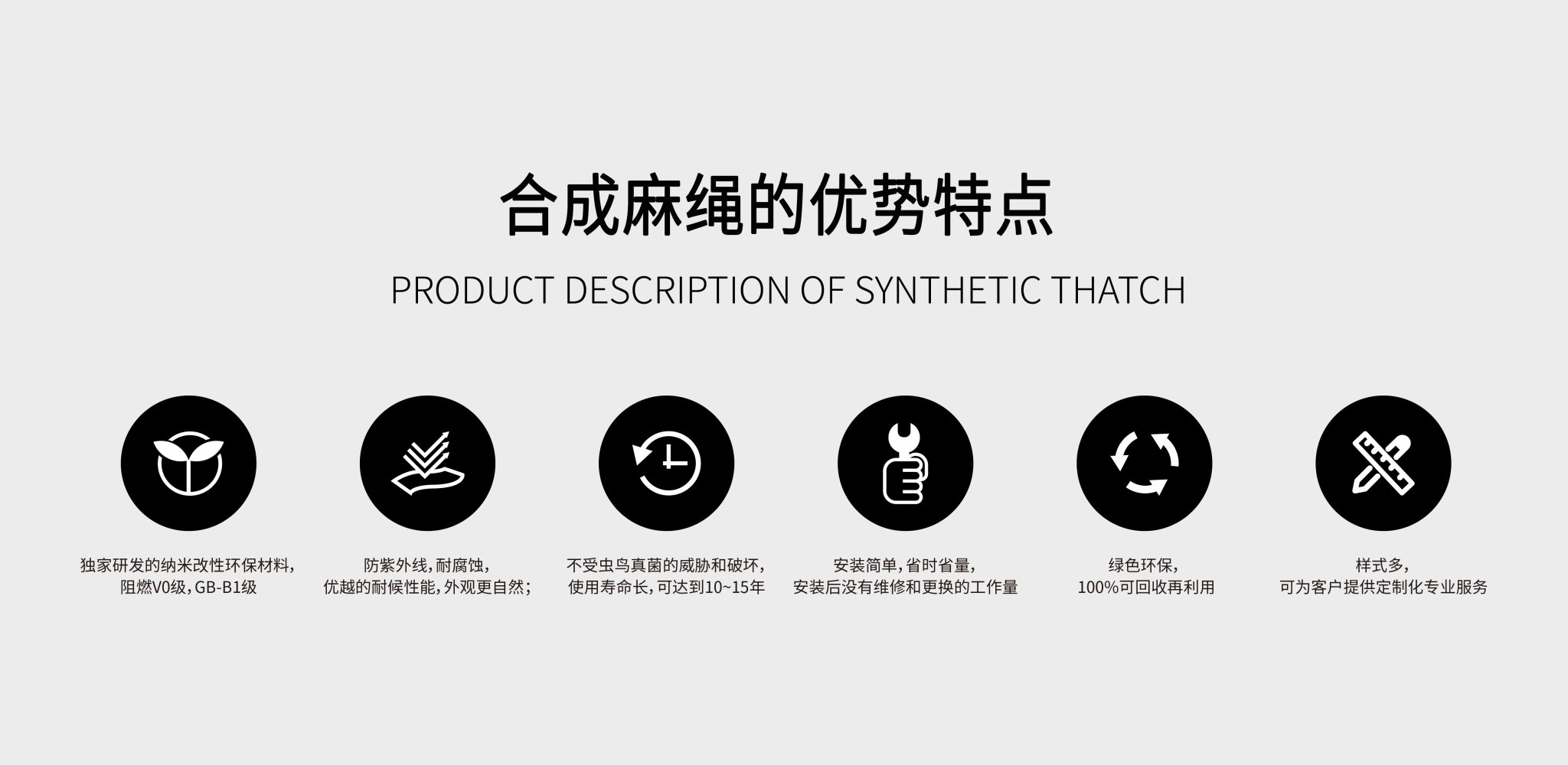 ? ? ? ? 合成麻繩多應(yīng)用于酒店中的花園小區(qū),動(dòng)物園,主題公園,餐館酒吧中的戶外涼亭,園林景觀溫泉度假村,海邊燒烤吧,休閑亭,高檔建筑群小區(qū),別墅小區(qū),博物館,海邊酒吧,巴士站,風(fēng)情街,水上休閑涼亭,熱帶風(fēng)情風(fēng)格等場(chǎng)所。